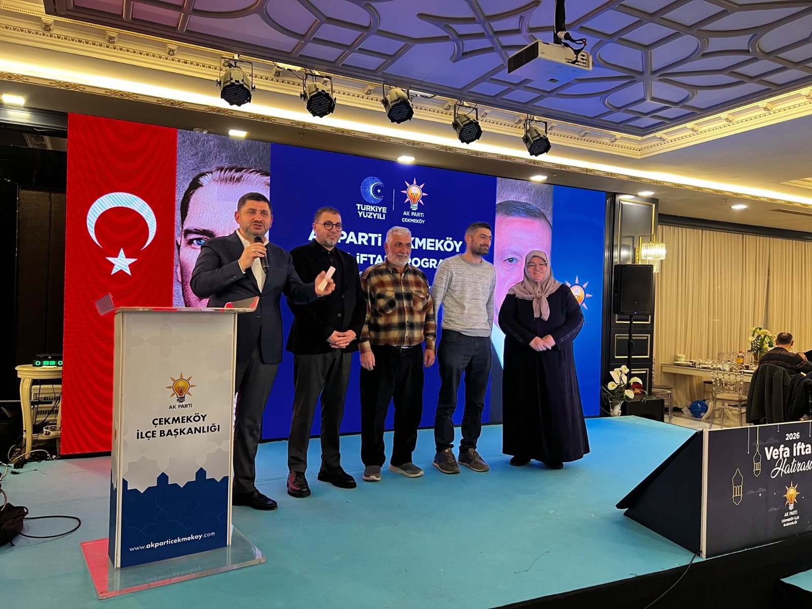 AK Parti Çekmeköy İlçe Teşkilatı, kuruluşundan günümüze partiye emeği geçen herkesi iftar sofrasında buluşturdu. AK Parti Teşkilat Başkan Yardımcısı ve İstanbul Milletvekili Yahya Çelik, İstanbul İl Başkan Yardımcısı Gıyasettin Gergin, Çekmeköy Kurucu Belediye Başkanı Ahmet Poyraz ve Kurucu İlçe Başkanı Şahmettin Yüksel, önceki dönem ilçe başkanları Salih Kırıcı ve Akın İlhan, MHP İlçe Başkanı Tahsin İnce, BBP İlçe Başkanı Murat Aslan, Kadın Kolları Başkanı Nuray Utku, Gençlik Kolları Başkanı Ömer Sıddık Ekşi, ilçe yöneticileri, meclis üyeleri, mahalle başkanları, eski yeni tüm teşkilat mensupları programa yoğun katılım gösterdi.