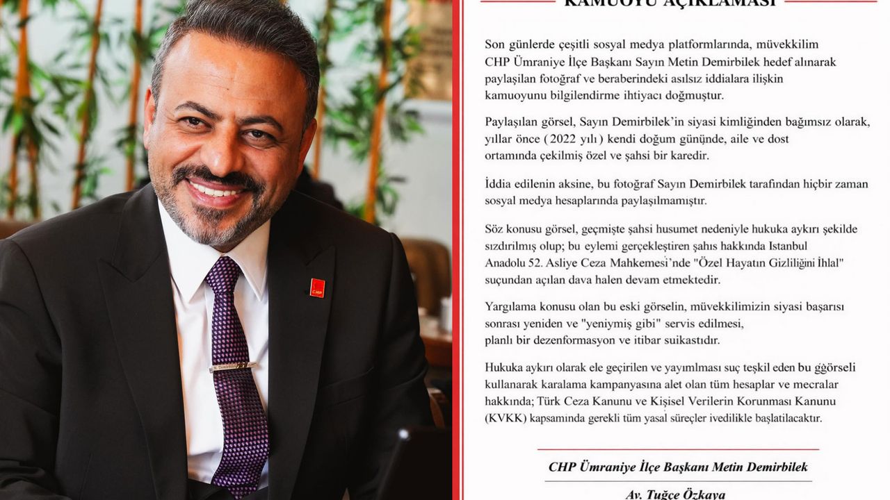 CHP Ümraniye İlçe Başkanı Metin Demirbilek’in sosyal medya ve bazı mecralarda gündem olan, siyasi kimliğinden bağımsız olarak 2022 yılına ait olduğu avukatınca açıklanan alkol masasındaki silahlı fotoğrafı tartışmalara neden olurken konuya ilişkin açıklama yine Demirbilek’ten geldi. Durumu “itibarsızlaştırma operasyonu” olarak değerlendiren Demirbilek, yaşananları acziyet olarak ifade etti ve şunları kaydetti: