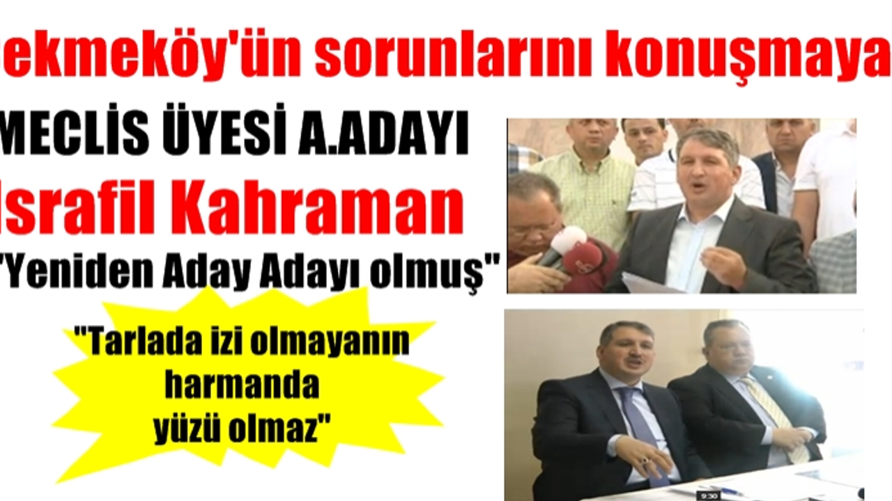 Çekmeköy'ün ithal meclis üyesi olan 5 yıl önce Çekmeköy'den seçilip meclisten meclise ara sıra görünen Ak Parti meclis üyesi İsrafil Kahraman sanki çok iş yapmış gibi şimdi bir 5 yıl daha seçilmek için aday adayı oldu.