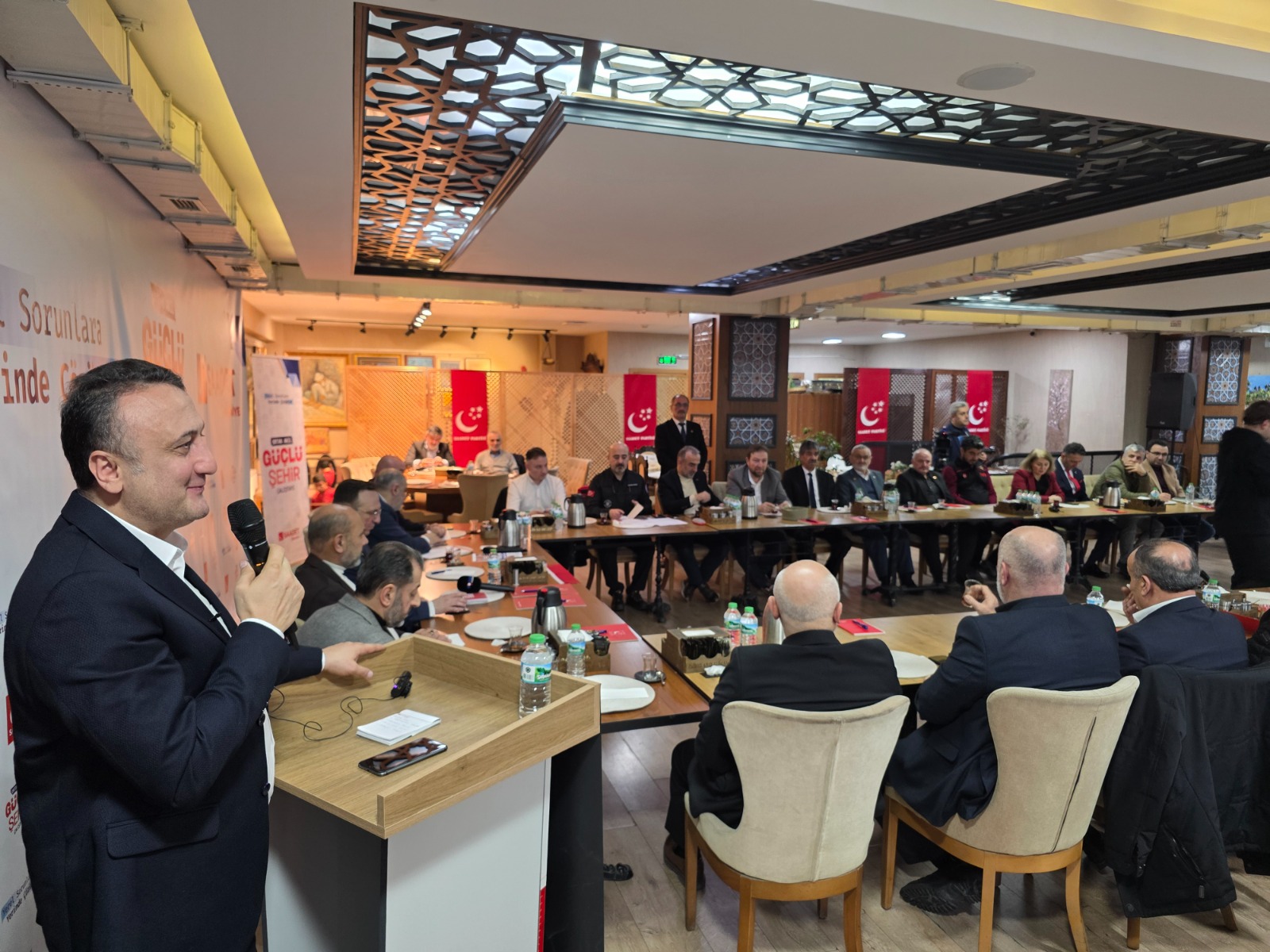 "Ortak Akıl, Güçlü Şehir" çalıştaylarının hedef ve amaçlarını anlatan Saadet Partisi Genel Başkan Yardımcısı Sinan Tekin de şehirlerin sorunlarına dikkat çekerek çözüm yolları konusunda önemli konulara parmak bastı. Tekin; “Şehirlerimizdeki akademik kadrolar, sivil toplum kuruluşları ve medya mensupları başta olmak üzere alanında uzman tüm vatandaşlarımızla görüşen çalıştay komisyonumuz; ortak bir irade ile şehirlerin sorunlarına çözüm arıyor” dedi.