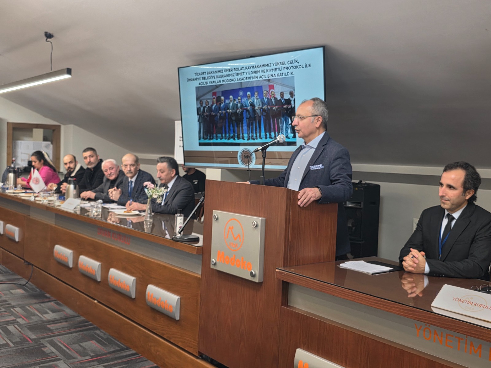 Geçmiş dönem yönetim ve denetim kurulu faaliyet raporları ile, gelir-gider bütçe hesaplarının oybirliği ile onandığı kongrede yönetim de oybirliği ile ibra edildi. Kongrede konuşan Ümraniye Kaymakamı Yüksel Çelik ve MODOKO Başkanı Koray Çalışkan, ticari ve sosyal manada sektörün önemine vurgu yaptılar. Kaymakam Yüksel Çelik, Suat Yazıcı ile marangozluk mesleği ve ağaç işlerinin bambaşka bir önem kazandığına vurgu yaptı. MODOKO Başkanı Koray Çalışkan da ithalat ve ihracat dengesinde yaşanan duruma ilişkin uyarılarını bir kez daha dile getirdi.